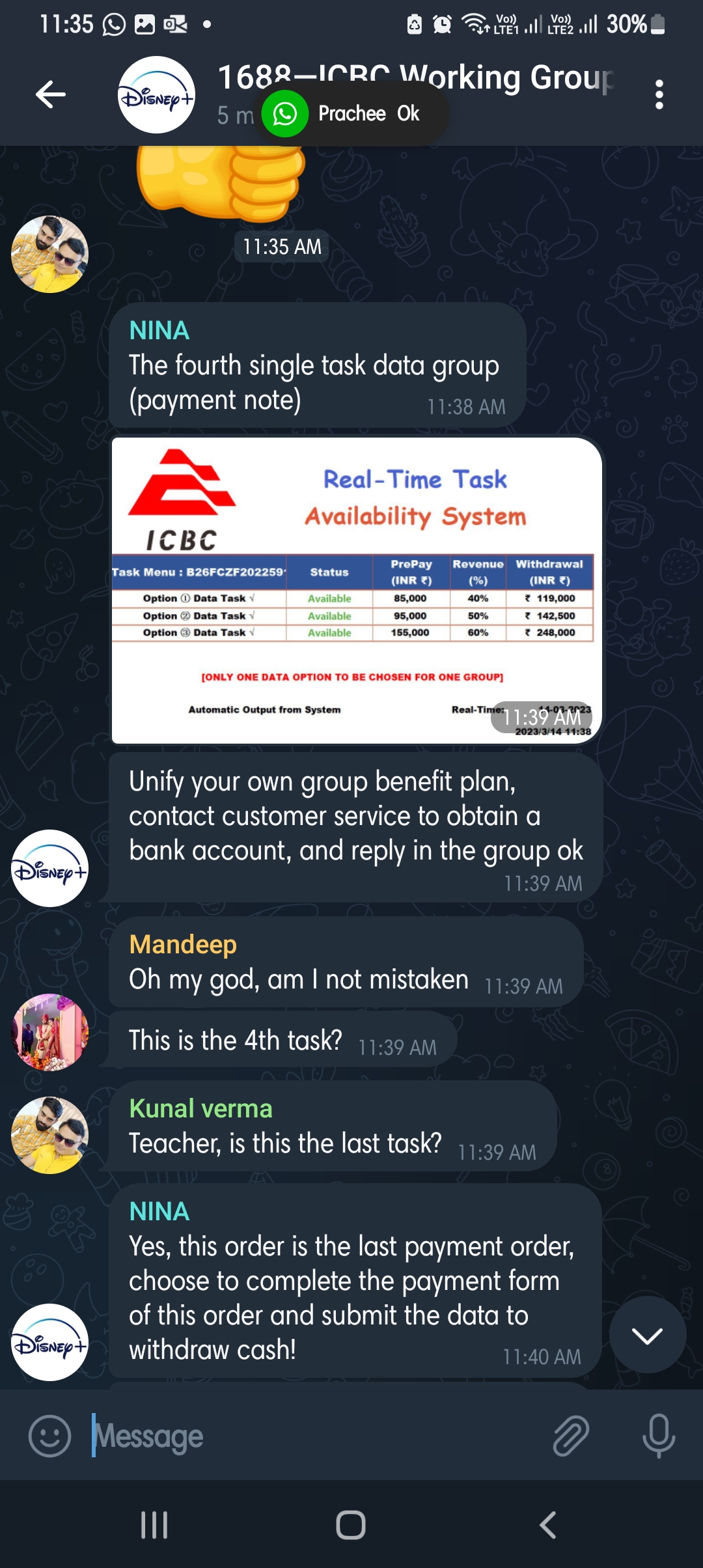 Then asked me copy the task serial number and send to her. They pay pennies like Rs 50 or Rs 20 for each review and then they start pushing merchant task. Here I first paid 2000 and assured a sum of 2,950 in return. I was later told that if I don’t complete part 2 of the task, I can’t get the money from part 1, so 5,000 more. Then comes part 2 of 35,000 Rs. more, they gave another task of Rs 75,000. This way I lost around RS.550000 . So I filed this for people awareness so that they will not come in trap of this fake people. I hope the Cyber cell police will take action and help me to get my money