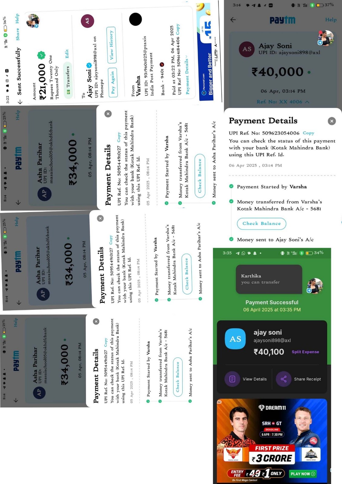 Initially, I received small tasks with fake earnings shown on their platform to gain my trust. Later, they started asking for money to “unlock” bigger tasks or complete the process, with promises of high returns. Trusting them, I made the following payments: