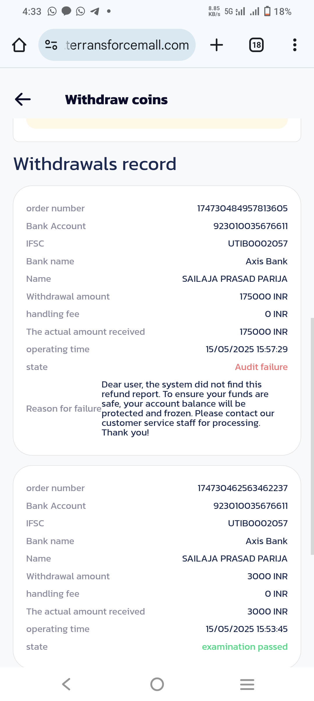 | Name(s) of companies complained against | INDICOIN (https://m.terransforcemall.com/login?redirect=/wallet/) |