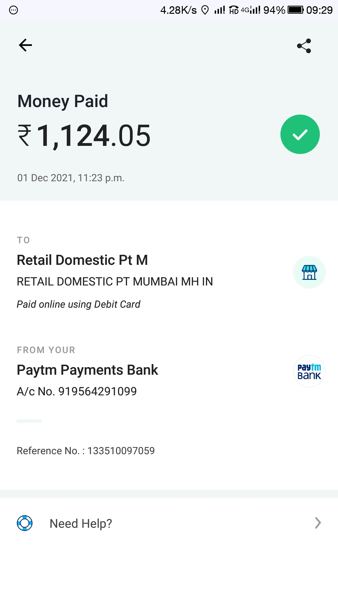 My daughter’s school fees paid through online school’s app for the month of December 21 on 01.12.2021, but school says that they have not received any payment. My debit card provider confirms that the transaction done was successful. Kindly do the needful.