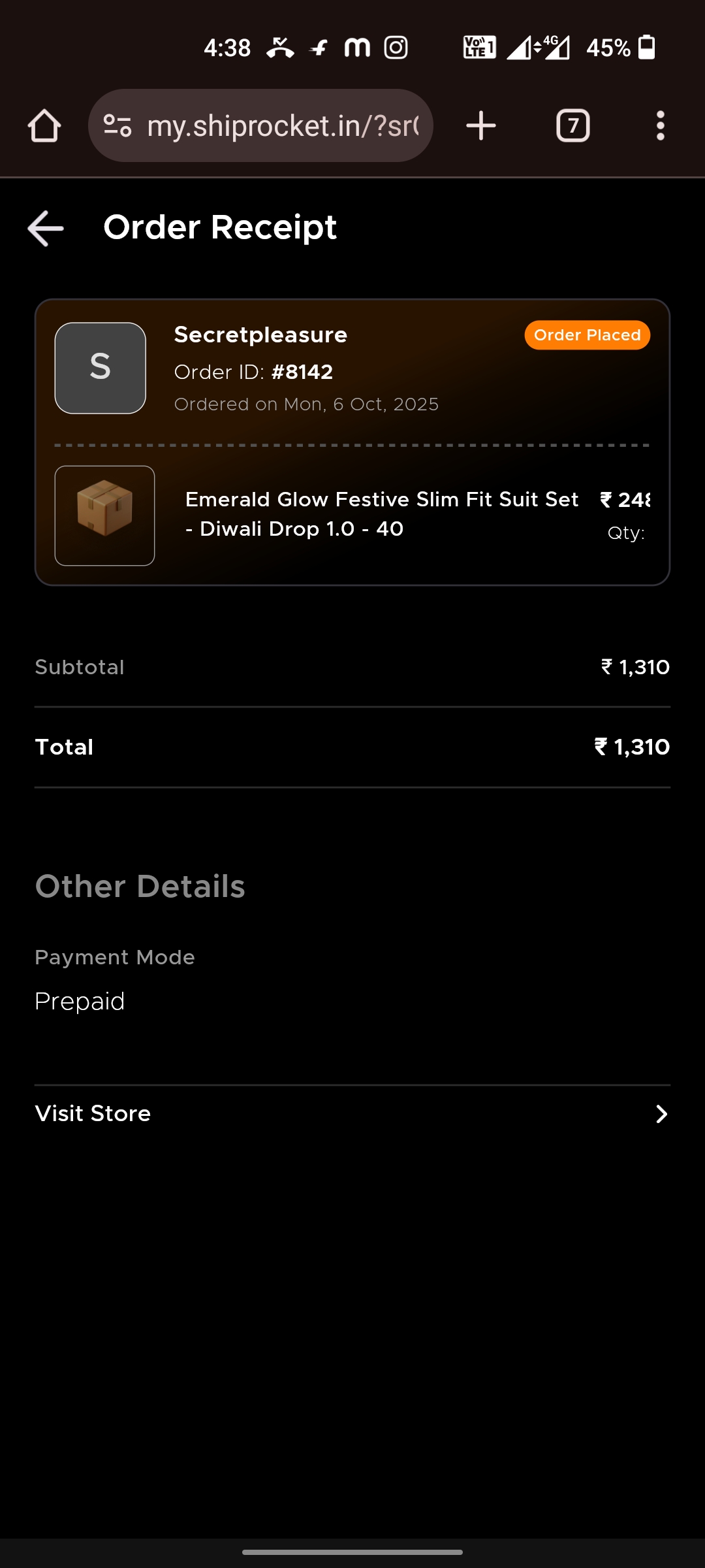 I have ordered cloths from secret pleasure online website with an amount of 1310 indian rupee on October 6 2025 . No response,no product have been received yet. The contact number given was unreachable. I tried to contact many time but no response. I want my money back which is lost in this scam. Please check further on about this website.