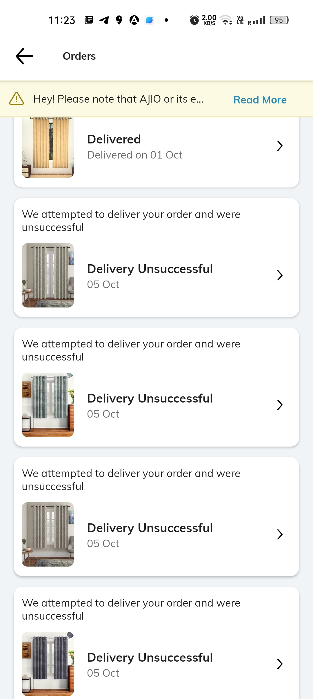 I ordered a product from ajio. One of the product was delivered on 1st Oct. Other products expected delivery was 4th Oct. On 4th Oct the seller cancelled the delivery for other products. I want my order at the same price
