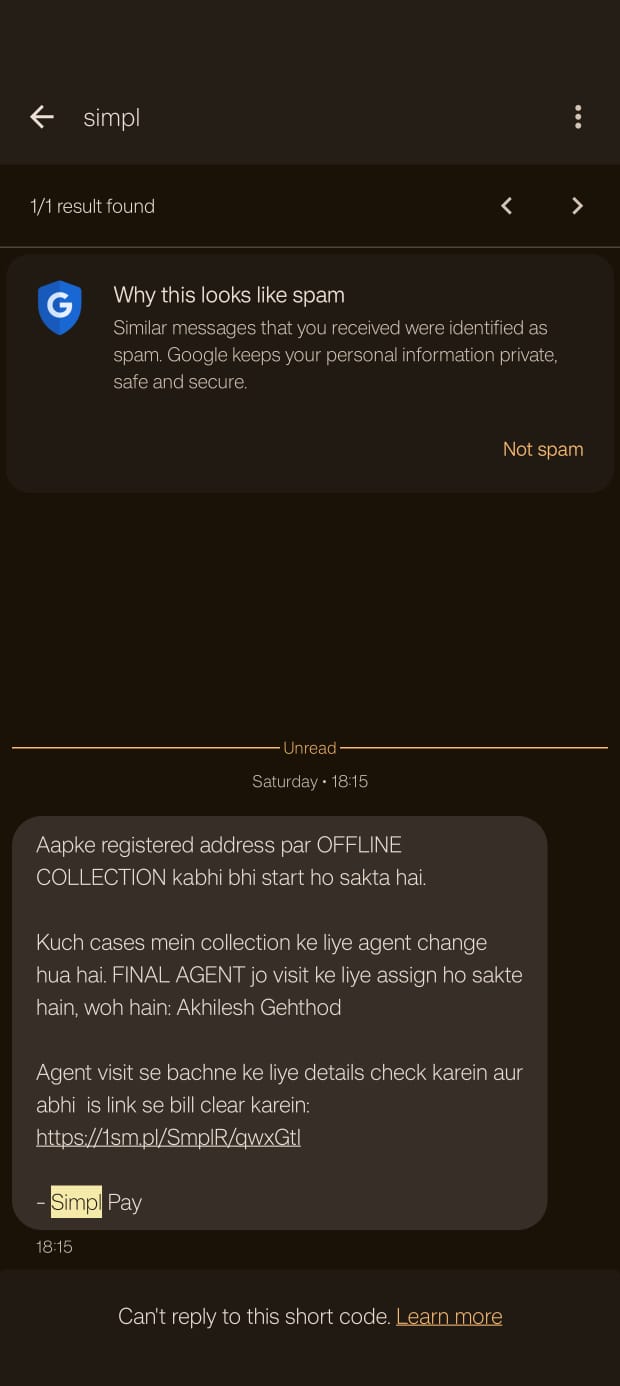 I haven’t ordered anything using the SIMPL payment mode. Still, they are sending msg to pay the bills of Rs 4670.31/-. I have cross-checked, and they are spamming me with emails and SMS. They have now started to send threatening emails linking to some IPC section.