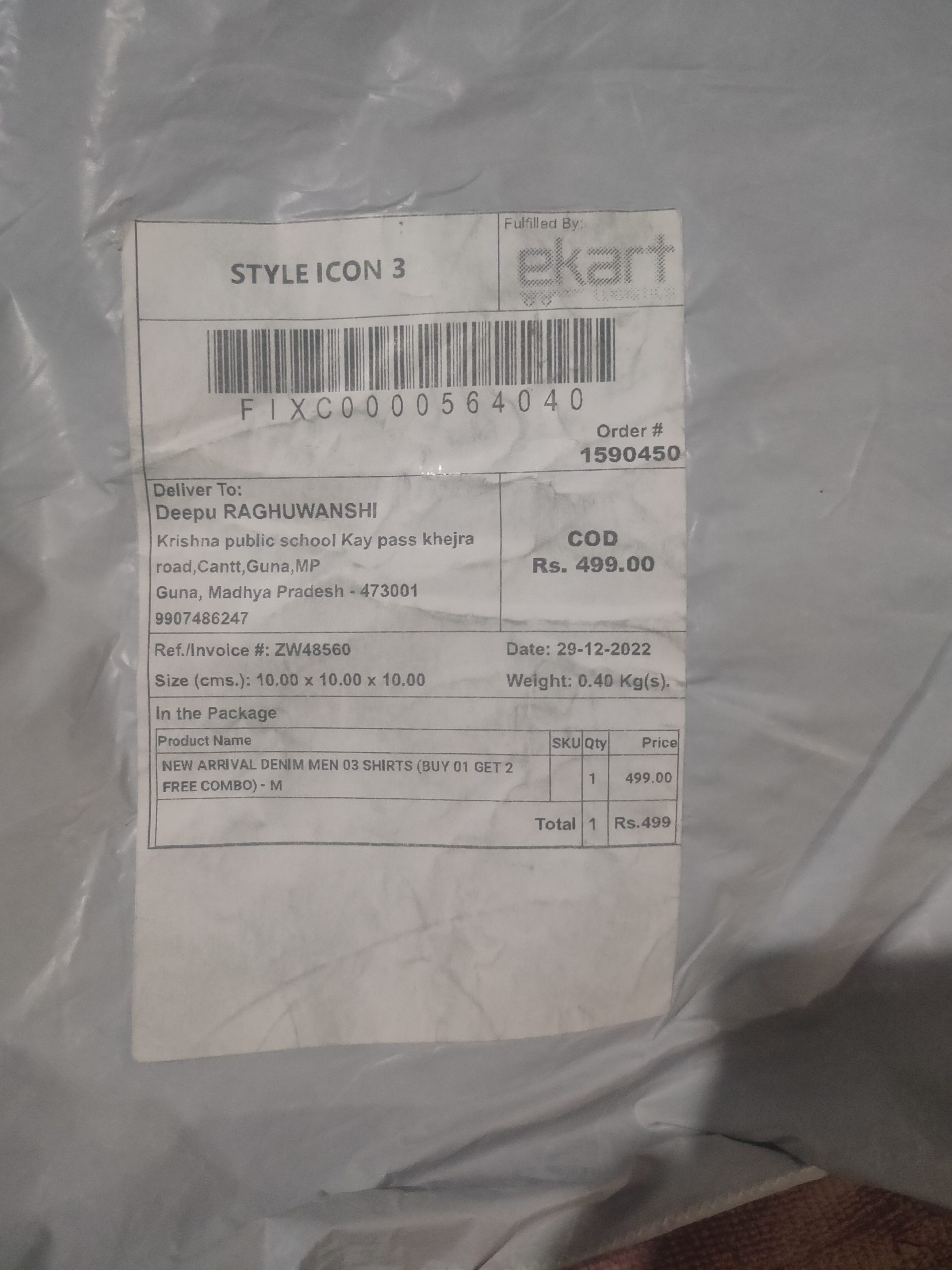 मैने डेनिम का कंपनी जोकिट खरीदने के लिए ऑडर दिया लेकिन वो जोकिट के बदले शर्ट आ गई है और वो भी शर्ट बड़ी हैं। और उसमे 30 दिन का बापिस रिप्लेसमेंट है और उस लिंक में कोई ऑप्शन ही नही है कृपया कर समाधान करें। ईकार्ट द्वारा डिलीवर किया गया है वो लिंक स्मार्टजोन.fun है