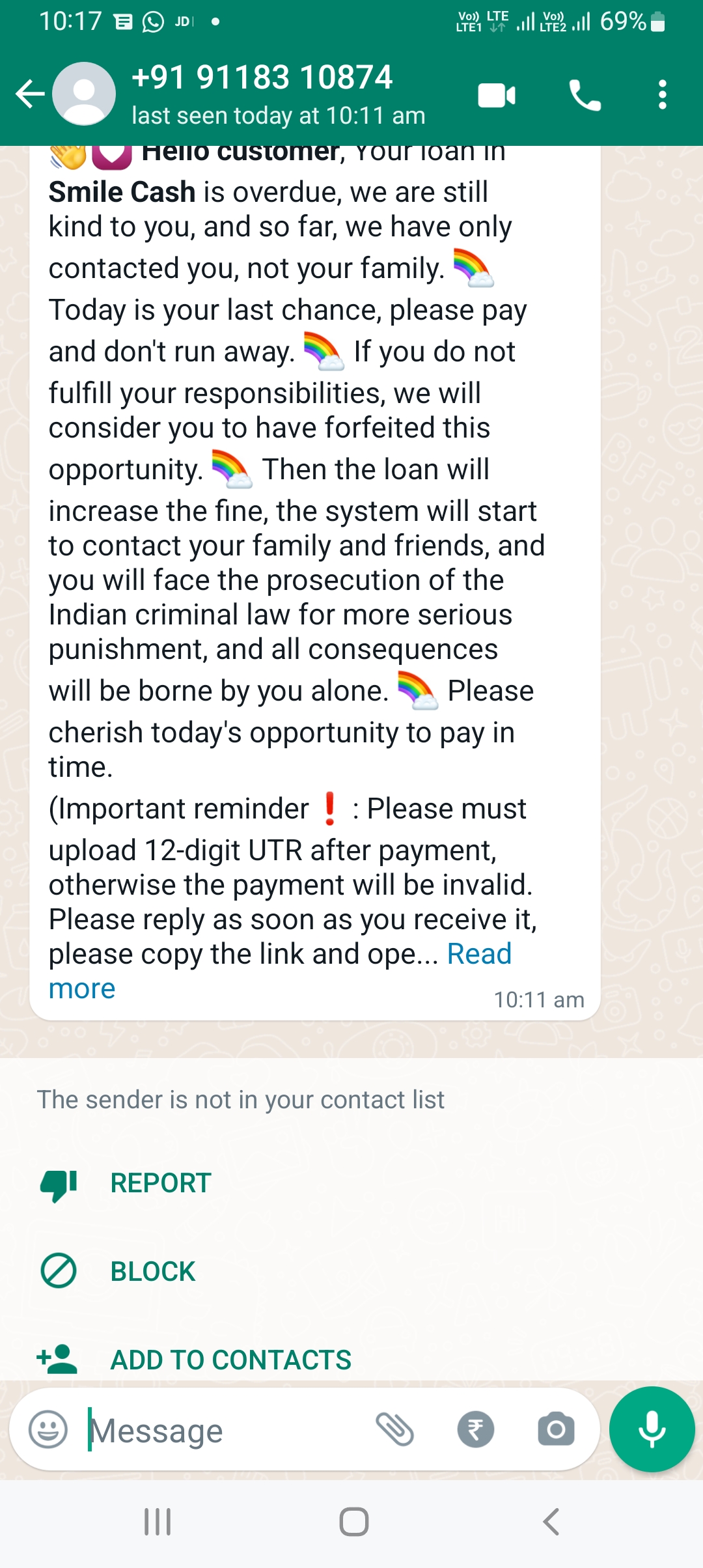 Sir,I did not get loan amount from any app but I get many message received today from smile cash loan to pay loan please solved this problem sir because I did not get any loan