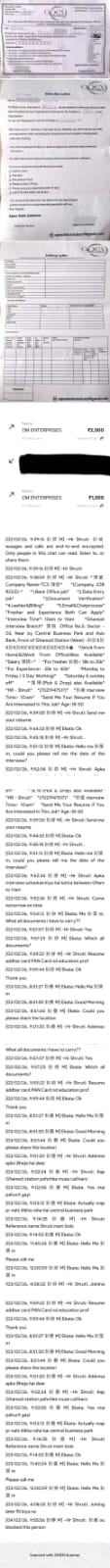I lost ₹3,000 in this fraud. However, my main intention in filing this complaint is to create awareness and prevent other innocent job seekers from being cheated in a similar manner.