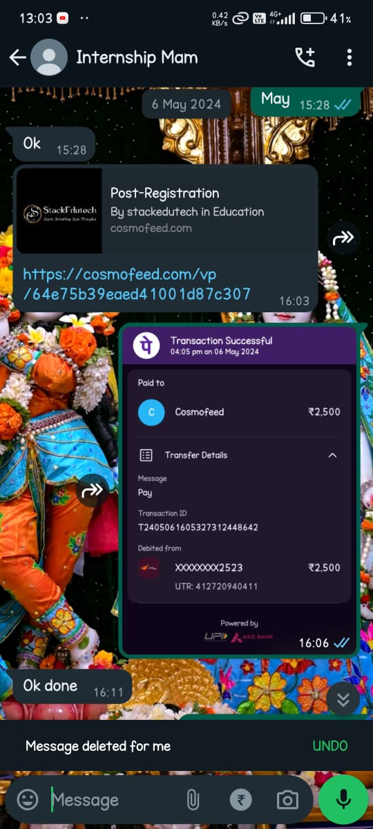 On May 1st, 2024, I paid a fee of 3500/- rupees to enroll in a Flutter app development course with StackedUtech. Despite multiple attempts to access the course I paid for, I have not received any response or resolution from the company. Instead, I have been provided access to a data science course, which was not the course I selected during enrollment.