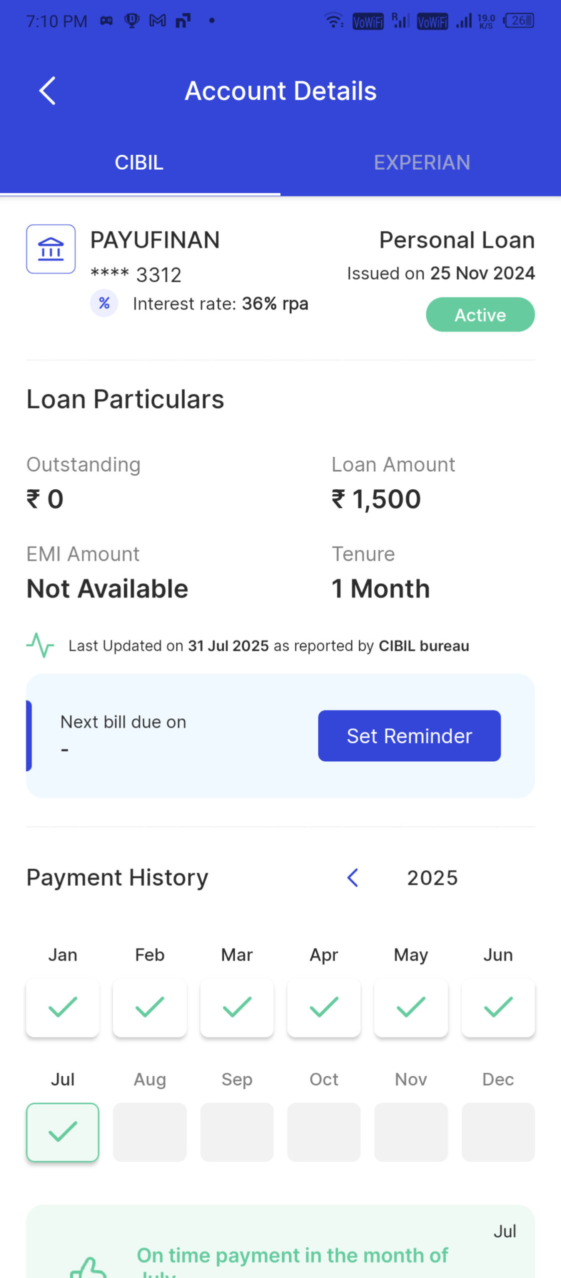 Status: Active (as per CIBIL report)