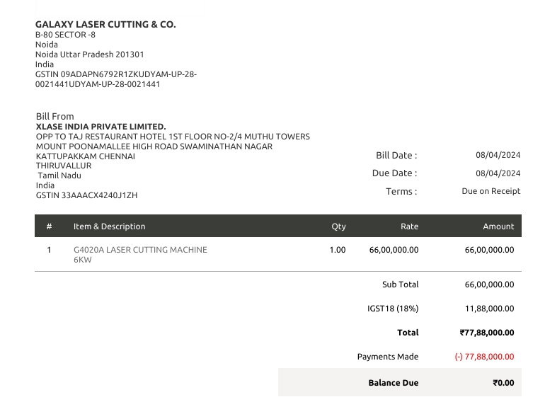 Invoice/Order Number: [ XLA/002/24-25]