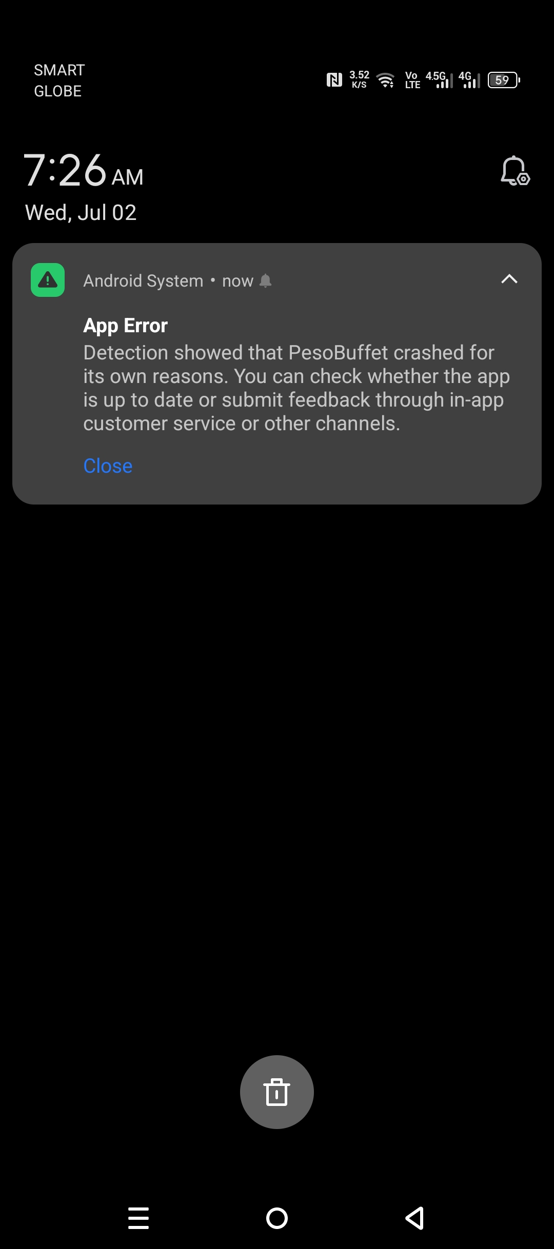 I was going to pay in pesobuffet, but I can’t open it, it keep crashing I don’t know why this happen