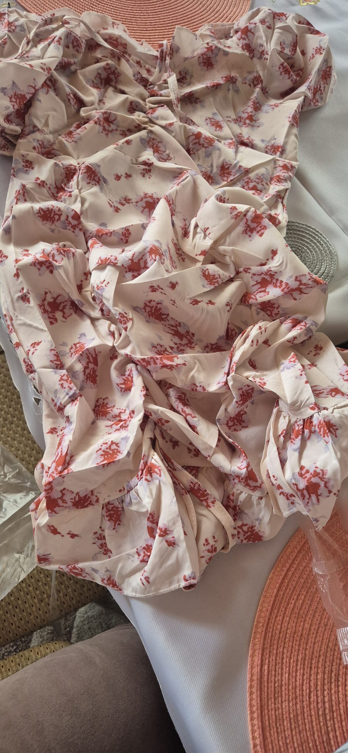 Otrzymałam sukienke nie zgodną z opisem wygląda na używana, to tego wychodzą z niej nicy. Na zdjeciu byla długa sukienka w kwiaty a tu jaks mini
