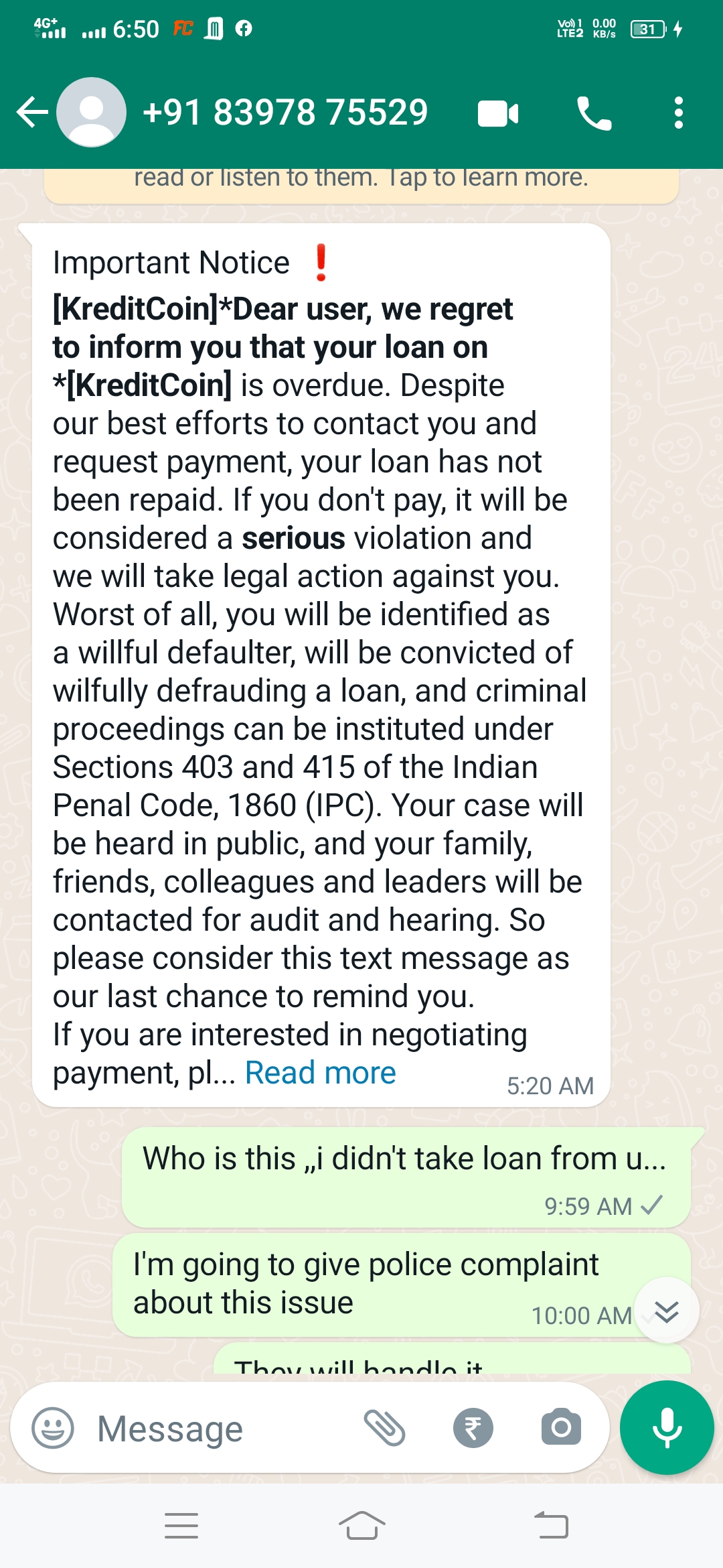 Dear sir/Madam,kredit coin ,one cash and supercash are sending continuous msgs regarding loan due but i didn’t take any from them,please kindly take an action those who are sending these fraud msgs