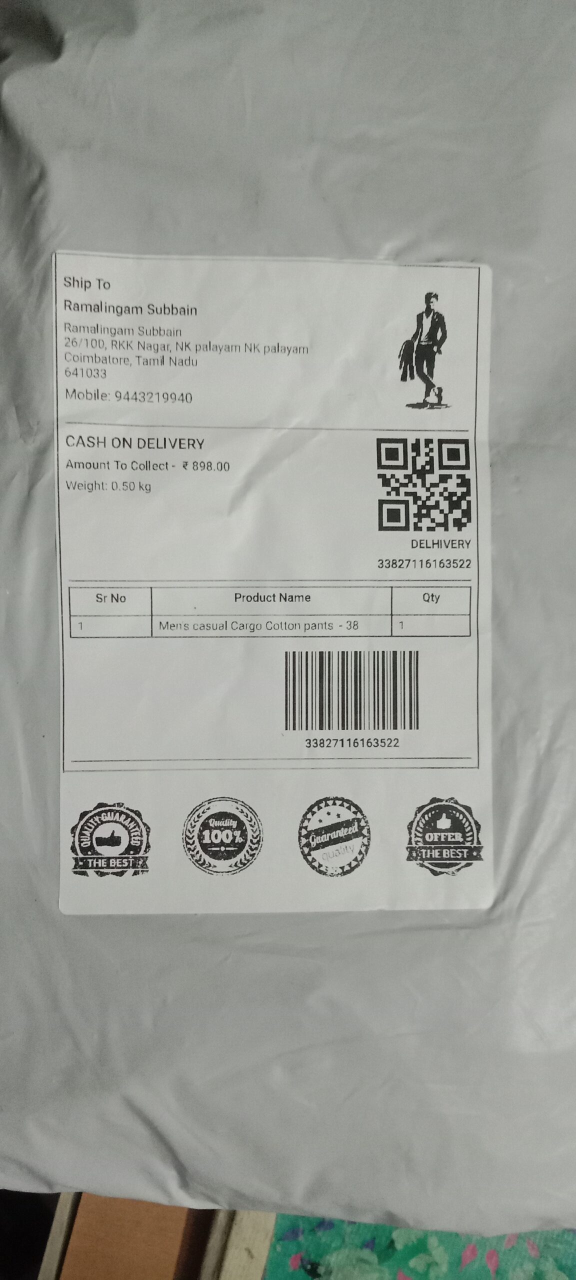We ordered new two gargo pants, but delivered used old pant and size wrong