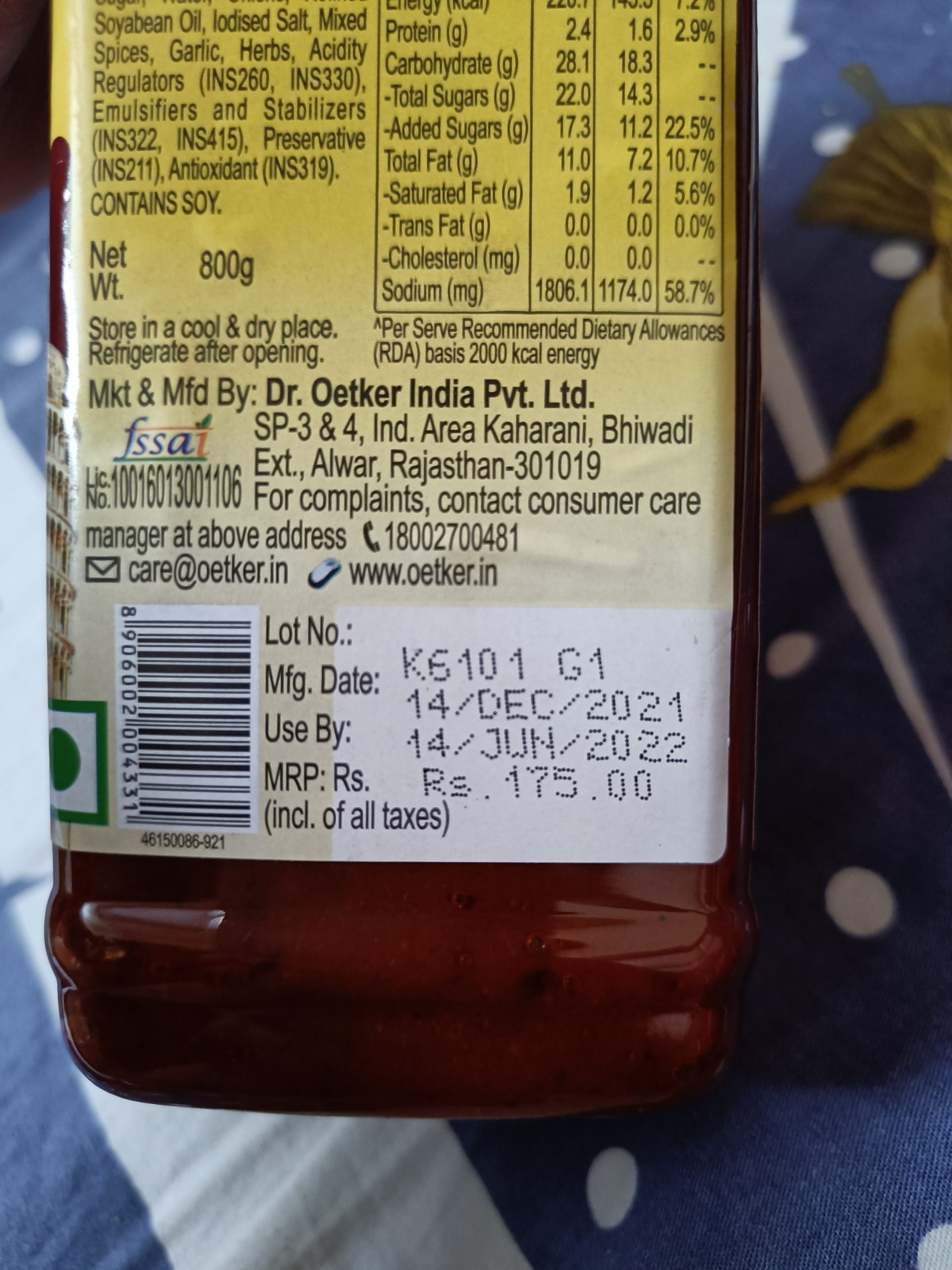 Today i ordered Dr oetkar pasta pizza sauce from swiggy instamart and swiggy send me expired pack.