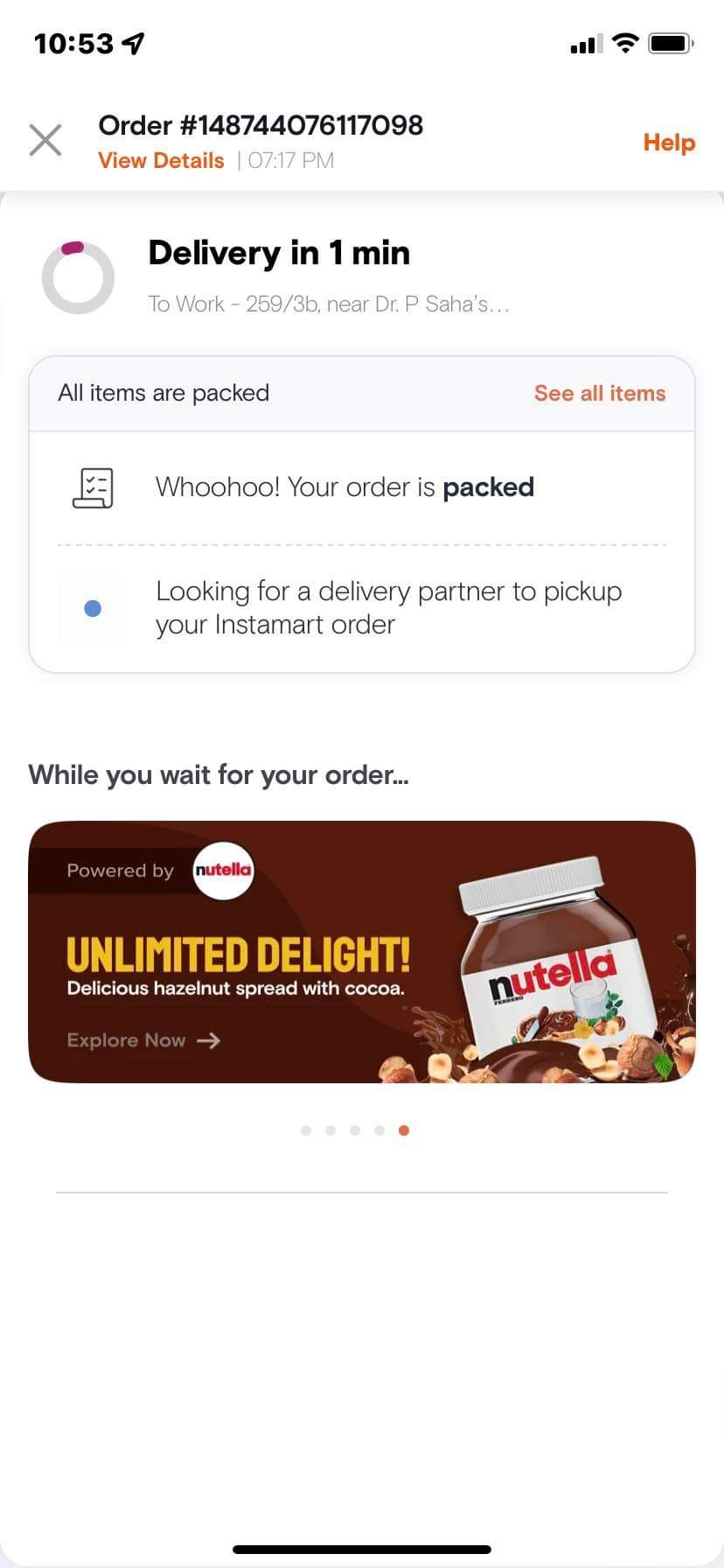 On July 19th I ordered groceries for my home through Swiggy Instamart. I placed the order at 7:15 PM and after waiting for 2 hours I found out that the order status is “finding delivery partner”. I initiated a chat with Swiggy customer support and I was informed that I will receive an email with resolution because they can’t cancel or refund the order due to technical issue. I have missed my dinner that night, it’s been 15+ hours and I still see that “finding delivery partner” on my order with no resolution whatsoever. No money was refunded either.