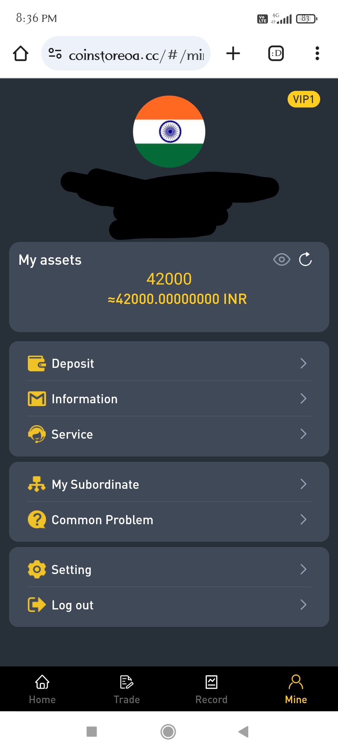 After getting profit of 42000/- was in coinstore in name of my mail id