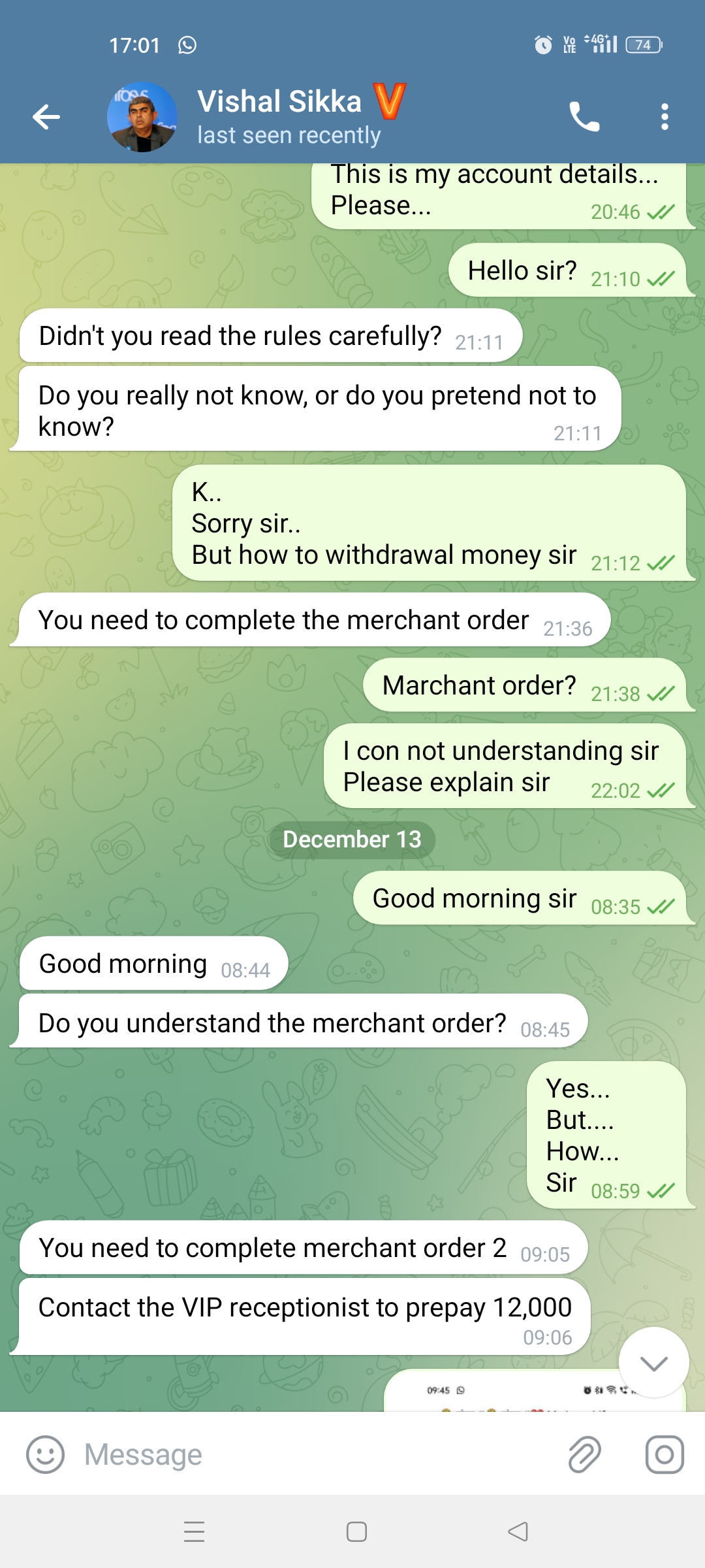 Vishal sikka ane telegram dvara nannu mosam chesharu..