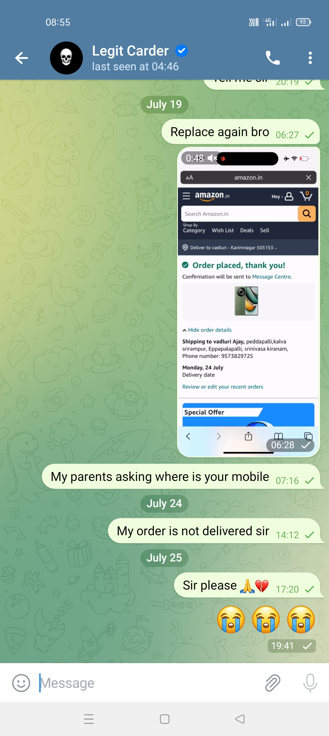 Telegram lo Legit carder shop tell me Realme 11 pro mobile 4000 rupees only iam pay 4000 rupees legit carder shop my message ki reply esthaleduu sir