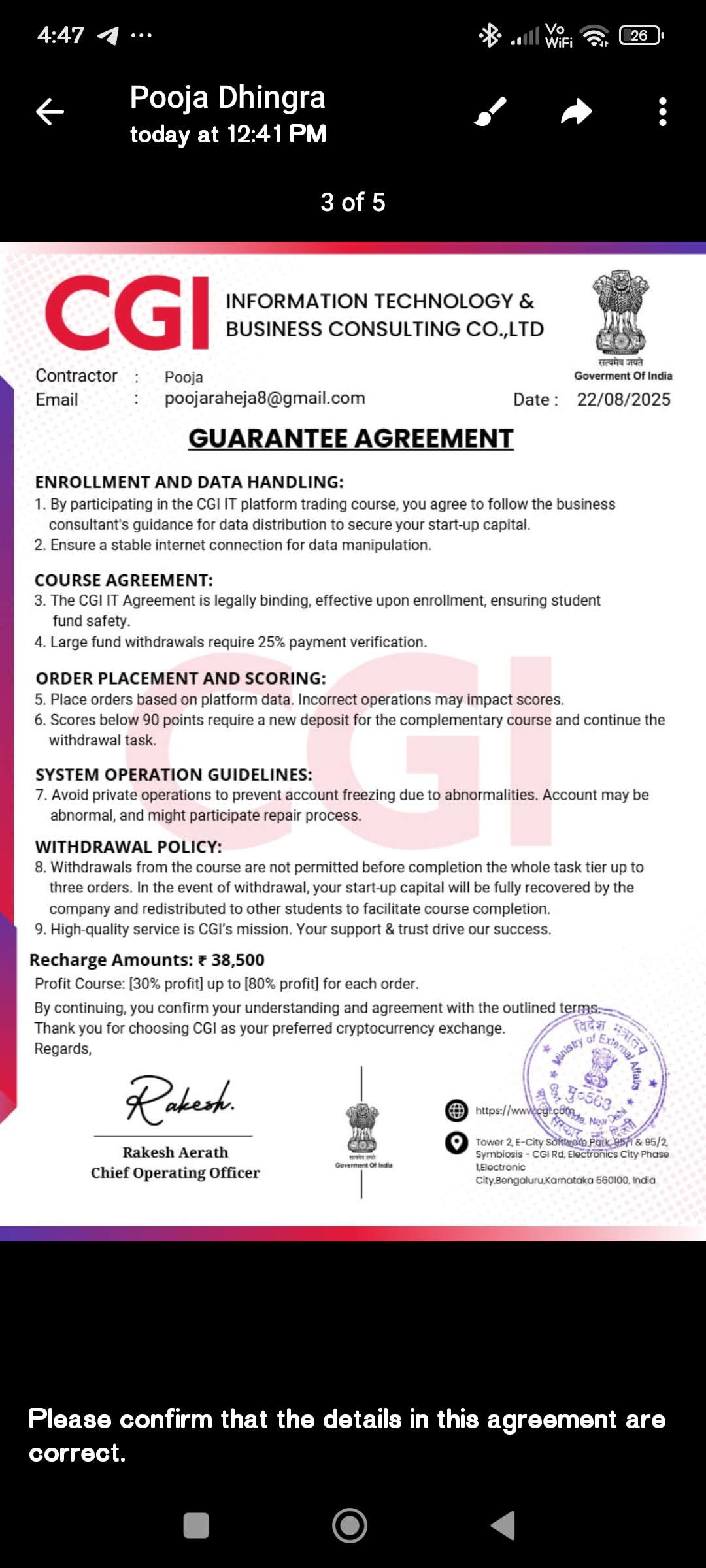 And after that they say you have one task more send 38500 rupees