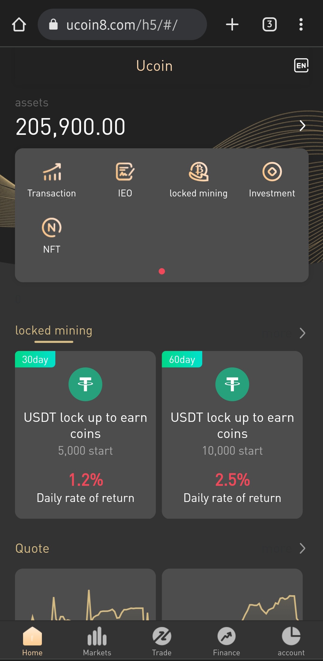 Hi, this incident happened on 2nd September 2023 as on my telegram they gave me a link of ucoin8.com for trading I did 3 task which they asked me to recharge first I did of 3000 then 10000 then 30000 after words they got an error they freezed the account after they again asked 60000 to unfreezed the account my total balance now is 205900 with profit which I won’t able to withdrawal they are now asking me to pay 30% tax on my total amount please help me my all funds got stuck I had made a terrible mistake