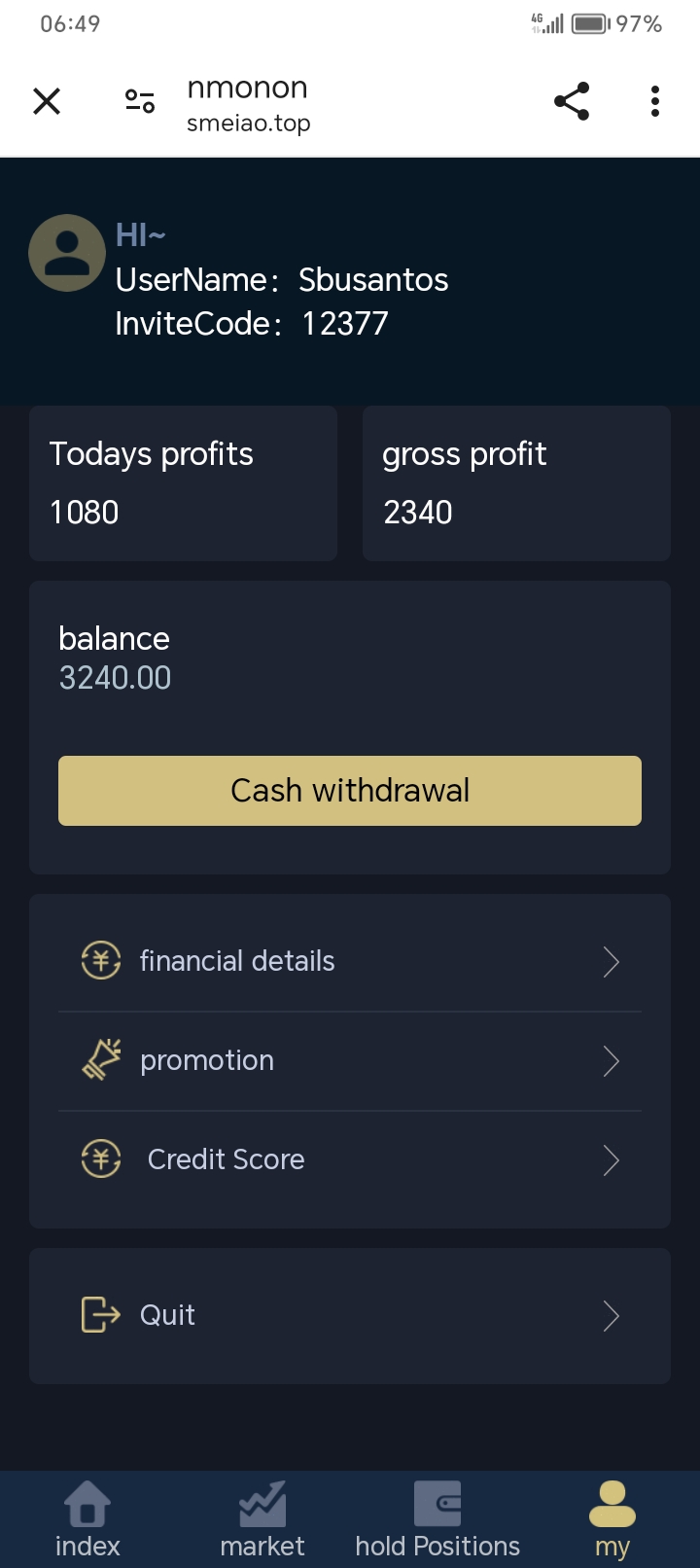 The next Day I saw a text message with a link, I clicked on the linked and it directed me straight to telegram where everything is done, 1st assessment you get 20 rand, then 2nd you invest 500 and it comes back with an interest of 300.