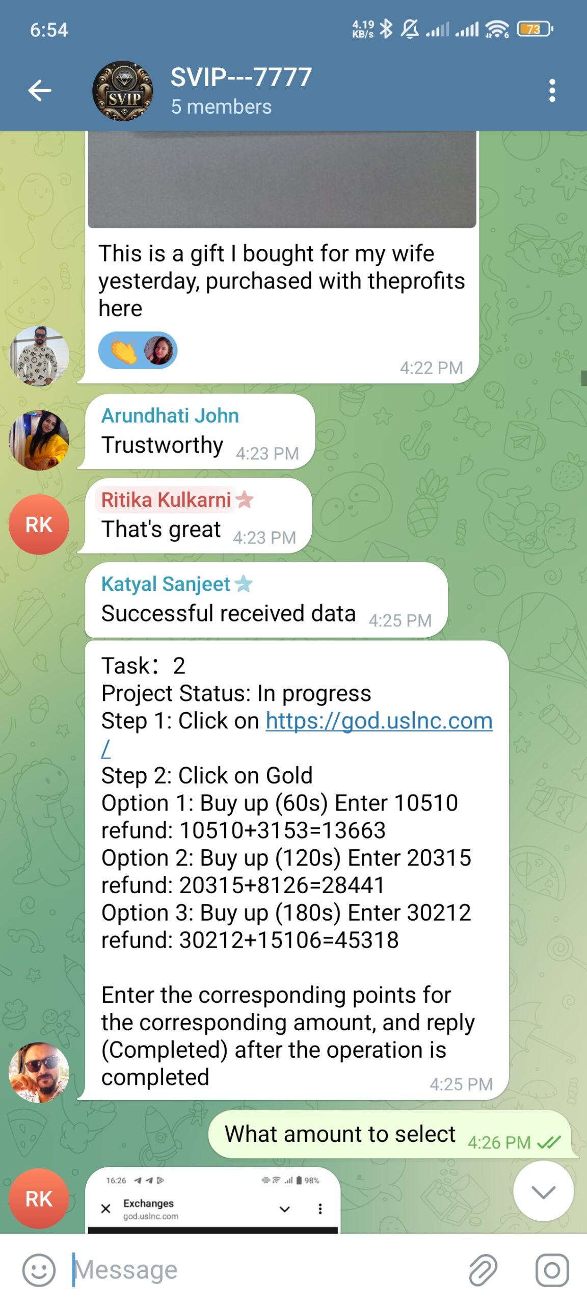 Initial someone contacted me for work from home and credited 180 rs for Google review., later they joined me in a group to give review and earn more,I did and recieved some amt back ,later they started with 1000 to invest for the task and and then 2000 and it went on like this untill my hard earned money got blocked ,to release that they asked more amt to get the invested amt back as you are a part of task and you can’t step back or you will lose all your money. This way I lost around 47090 amt to the scammers.in an fight to get my blocked money back