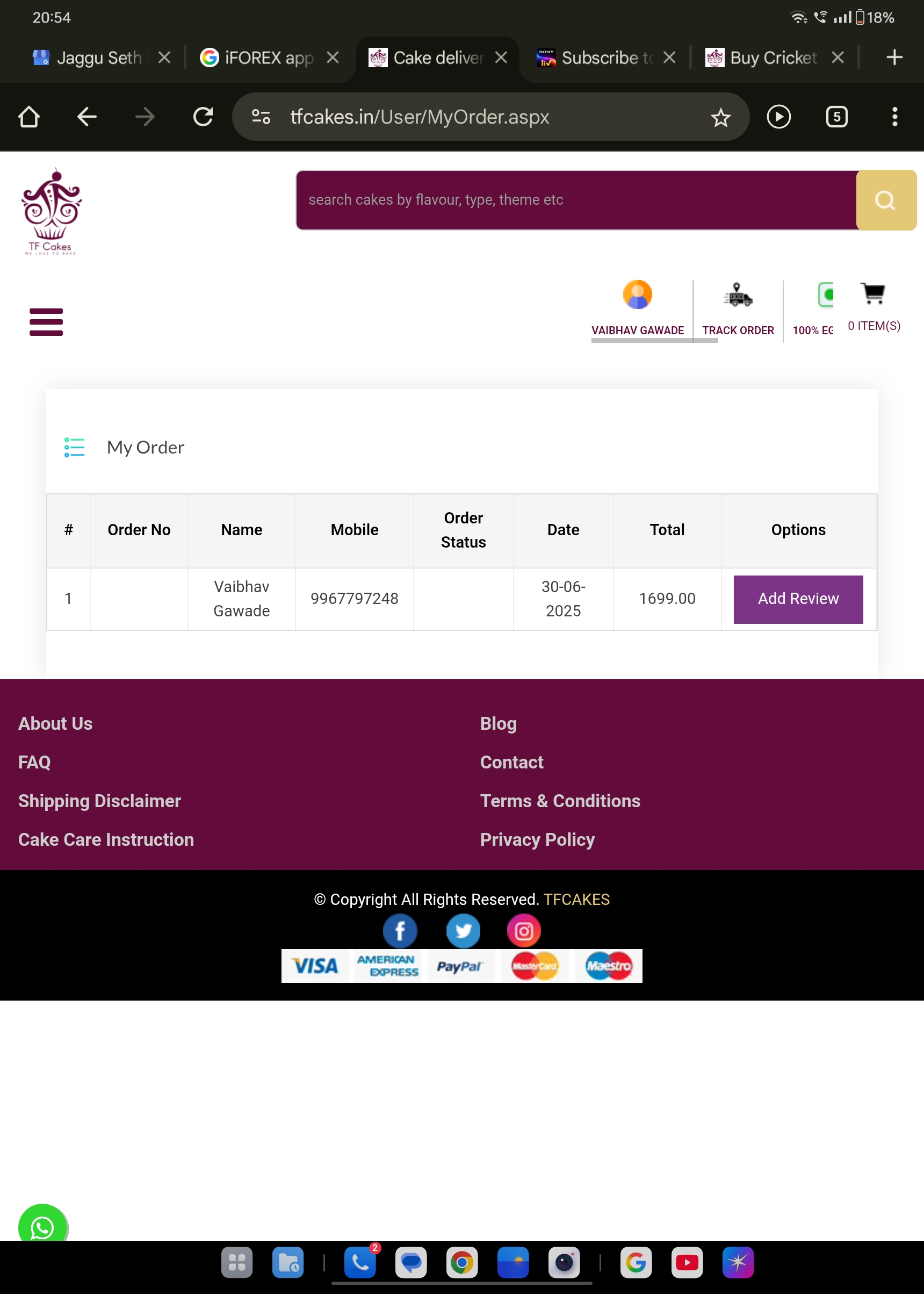 | Name(s) of companies complained against | TFcakes.in |