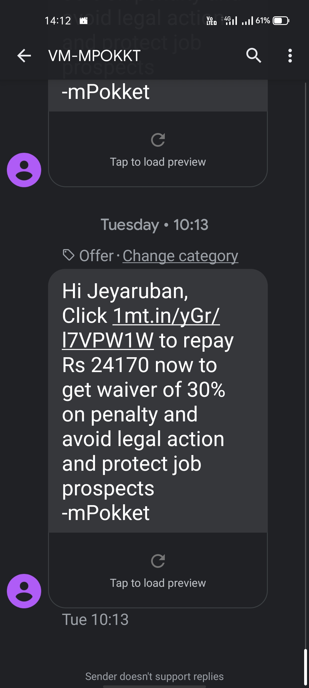 I have been using the mpokket from 2018 from my college they offered me a loan till 2020 i had taken and repaid the loan amount correctly. Totally i had been taken and repaid loan amount till 2020 totally 57000.lastly i tooken a loan of 10000 fron this mpokket due to lockdown i cant pay the amount till date. Now the amount should repay with penalty of 25000 nearly. They are harassmenting me in phone calls and threating me. Pls do some action about that fraudlant company jalan chemical industrt
