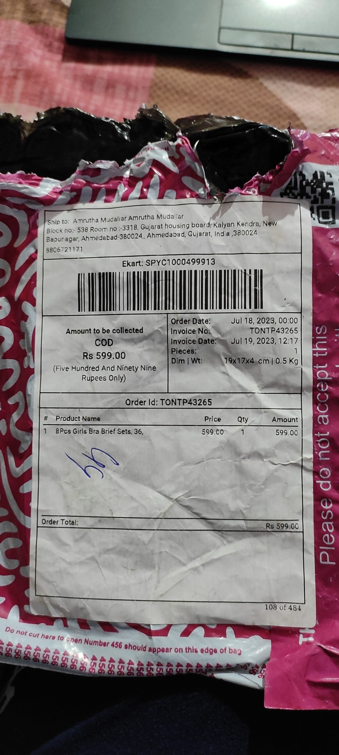 Order Date : July 18 2023 Received Date : July 25 2023