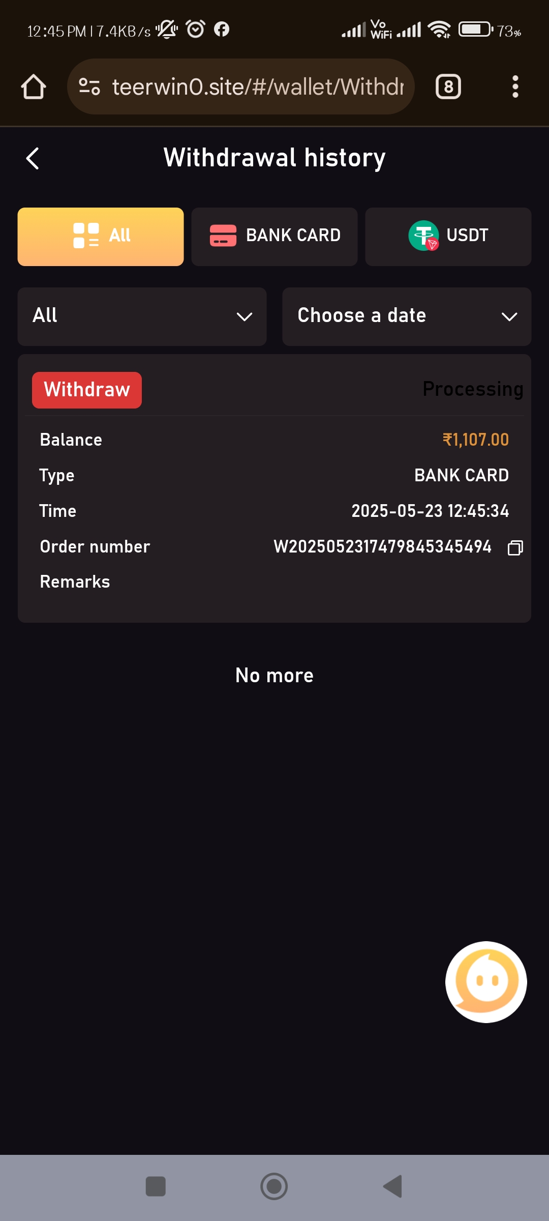 I deposite Rs. 500.00 and win Rs. 1107.00 and i want to withdraw this winning amount and then i submit withdraw request at the time of withdraw they show withdraw done in 2 hours now its more than 24 hours my money still not withdraw in my bank. Their customer care not working.