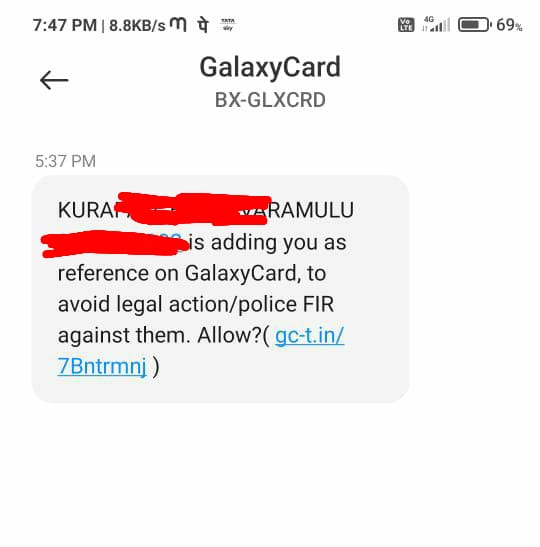 I did not take any loan from galaxy card app.but more then six months ago i installed galaxy card app.but today many of my phone book number got messages.am attaching that messages.this is very dangers and liferisk app .please delete app and take action