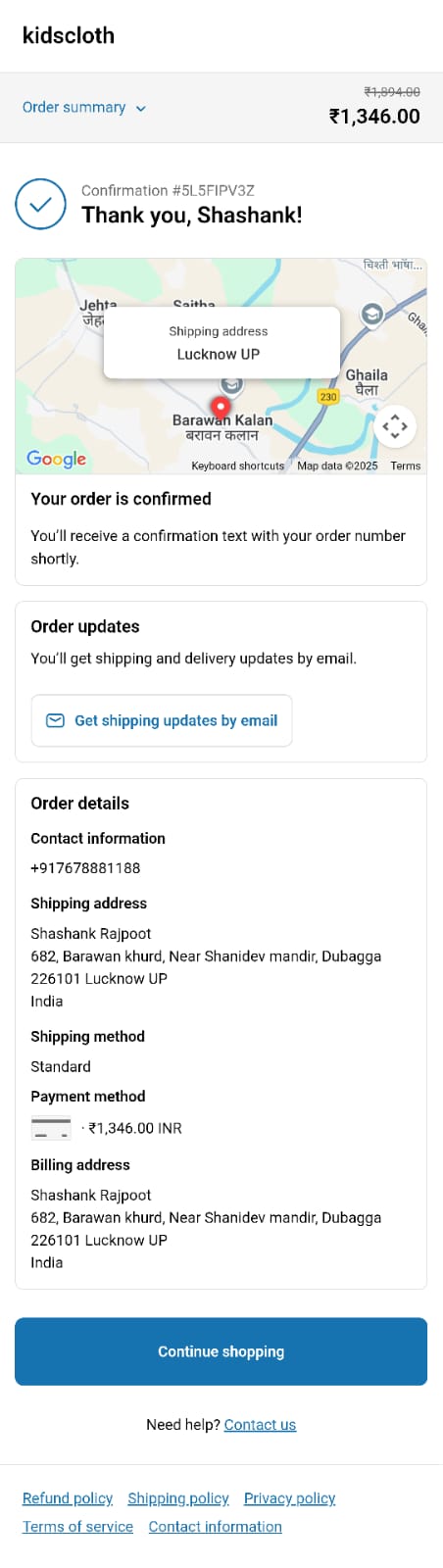 I have purchased some items/products for the website name (https://kidscloth.store/, via Instagram) and made the payment as well but neither received any message/confirmation email/Tracking details nor received the products as well from the seller.
