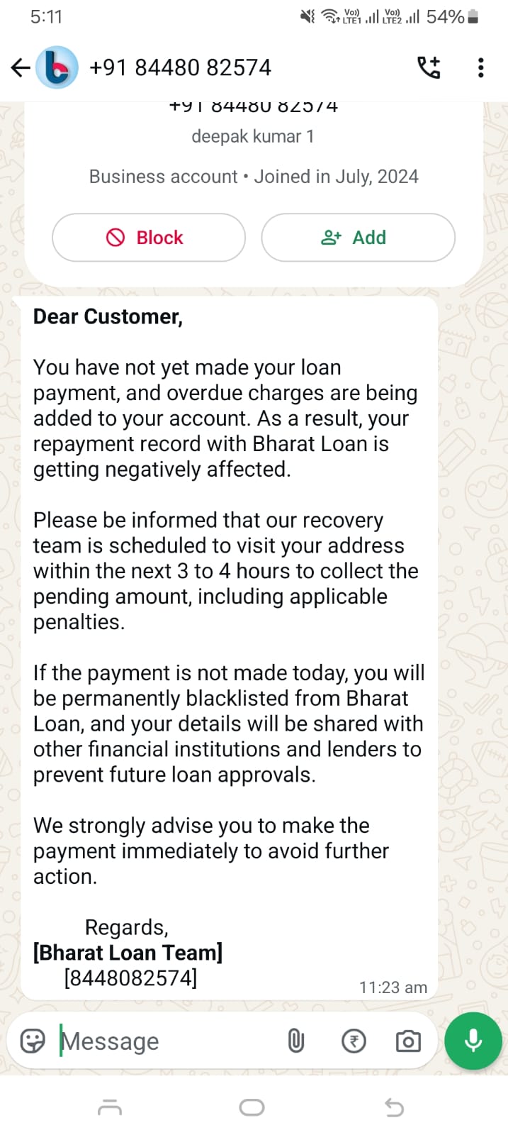 I have taken loan of Rs 14000/- from Bharat Loan but due to financial issues i am unable to repay amount which is aprox 26000/- in just 40 days. Now they are calling me and theretening me that they will come to my home and office and shout.