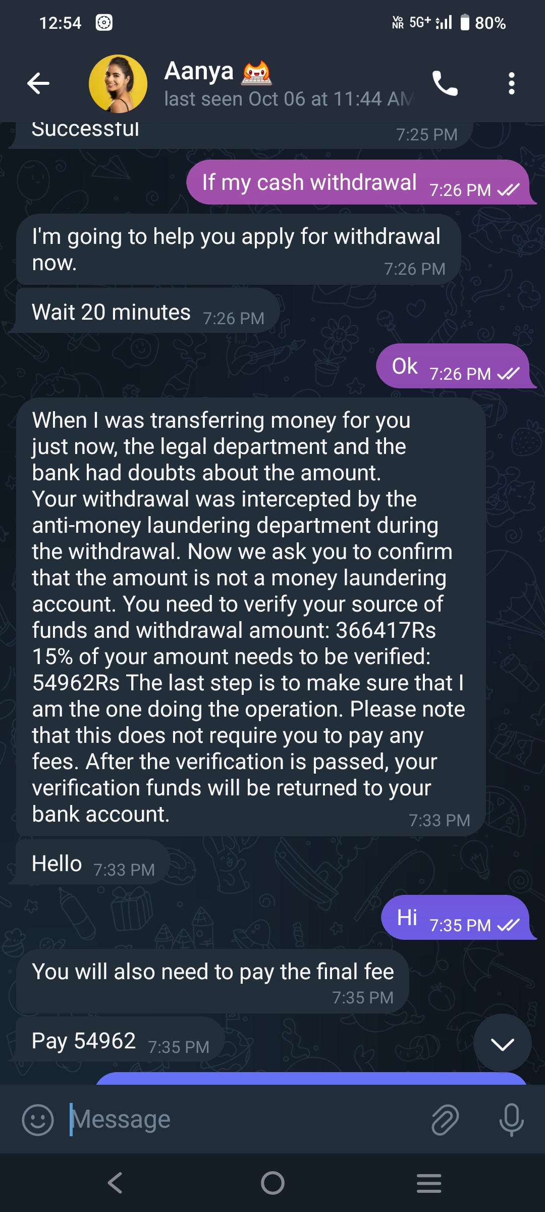 First, it is a work from job. It is from the meesho company. It said that you will get the cash back the same day you pay. But you can only withdraw the cash after completing the task.After that, those who paid cash were shown a screenshot of their withdrawal. After that, when the task was completed, they said that if you want to withdraw the amount together, you have to pay the money again and it will be returned.But I didn’t pay the money. I asked for my money back. Later they didn’t reply. That’s why I want my money back. Please help me with that.