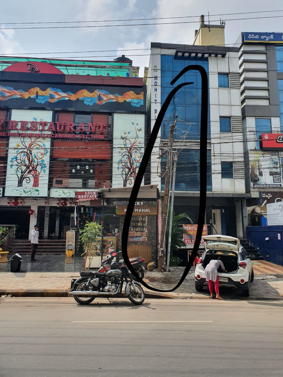 In front of my building i.e H no 1-74/2/1/B/NR Madhapur Telangana 500081. Their is a Electricity pole in front of my building which is tilted which was done by your DEPARTMENT PERSON and at any time it will fall down which can cause a very dangerous thing with the people stays their. So I request you to please make it straight.