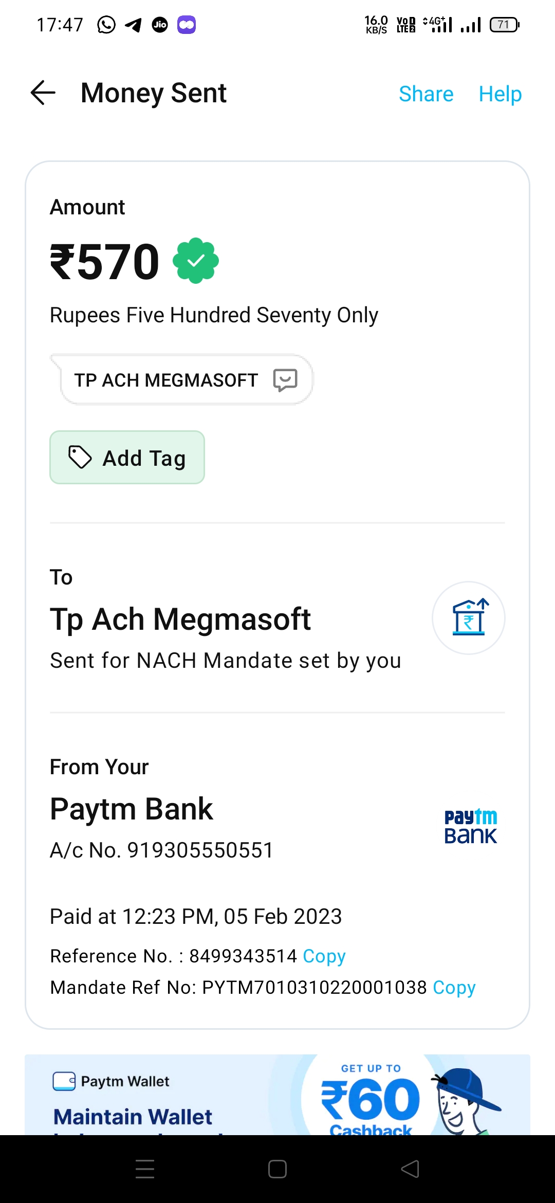 Rs 570 was automatically withdrawn from my account.Money deducted from my account number 91****550551 without my knowledge