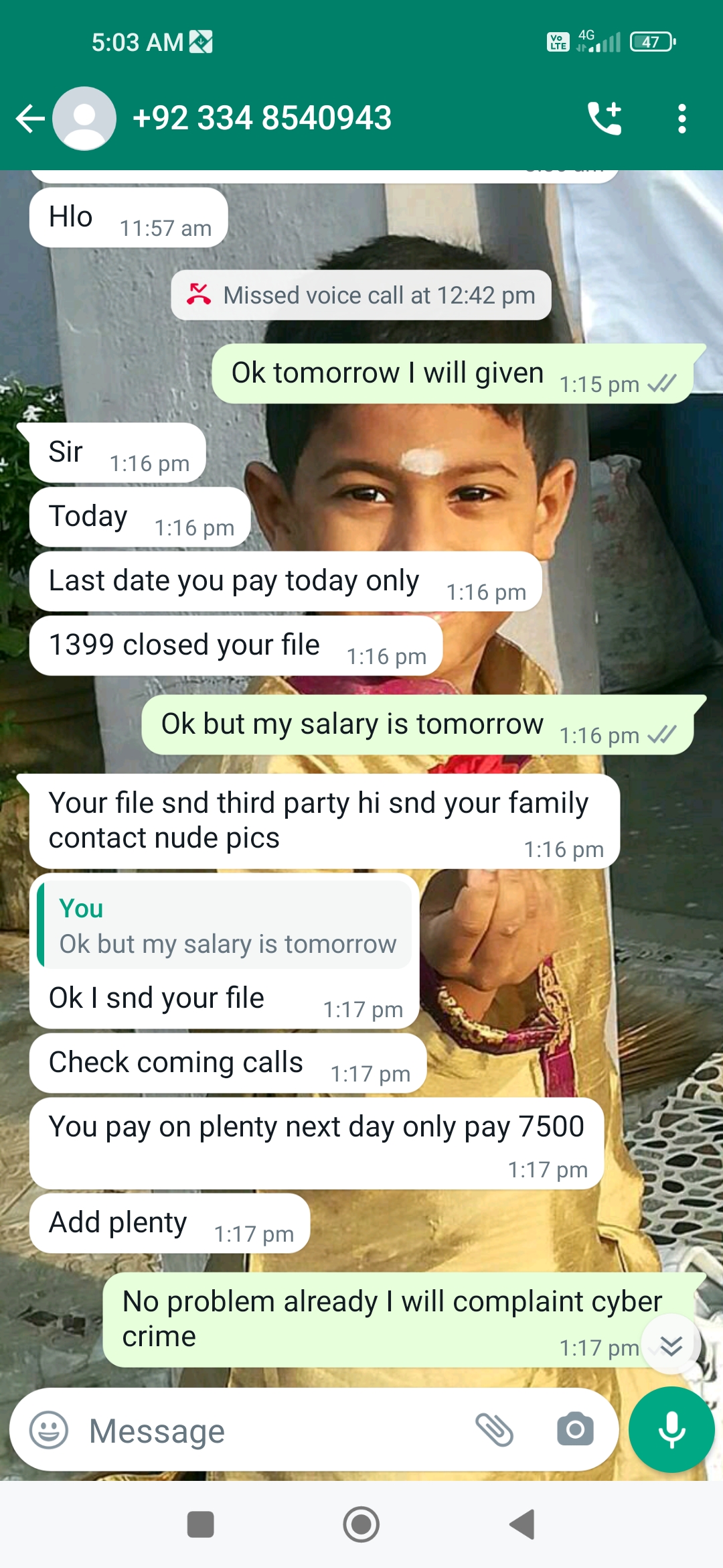 Iam getting loan in toop loan app.On that day I can’t pay I want to ask 2 days time but he said pay now otherwise I send you nude photos in you contact list.than I blocked that contact he will send me nude photos editing my images in my contact list.