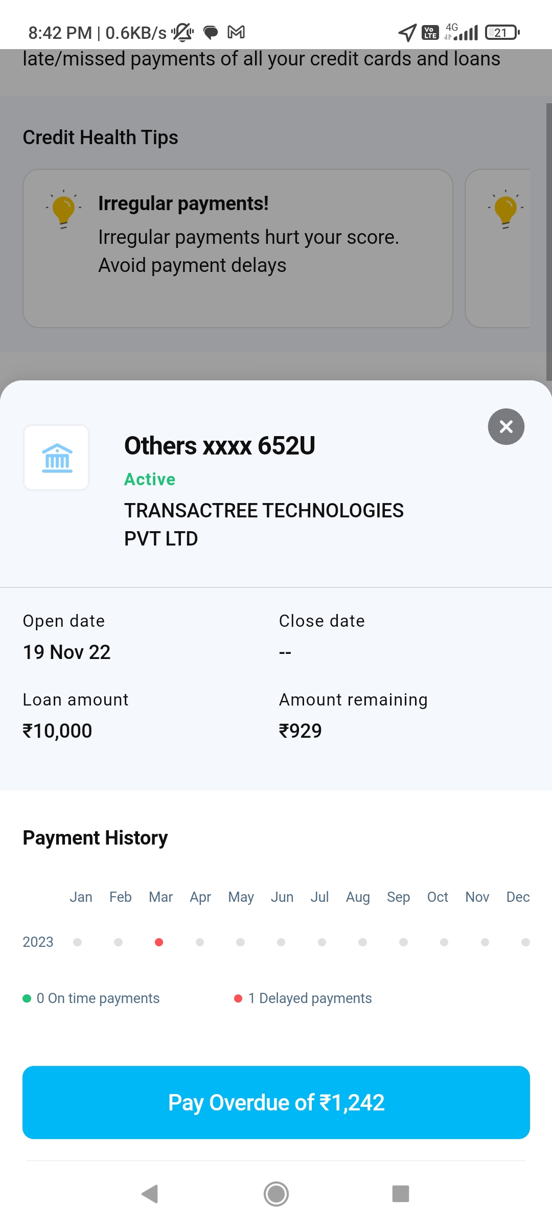 Mere Paytm sibil score per yahTRANSACTREE TECHNOLOGIES PVT LTD 10000 loan dikha raha hai Mere Paytm Paytm se sirf please yah account Hata Do