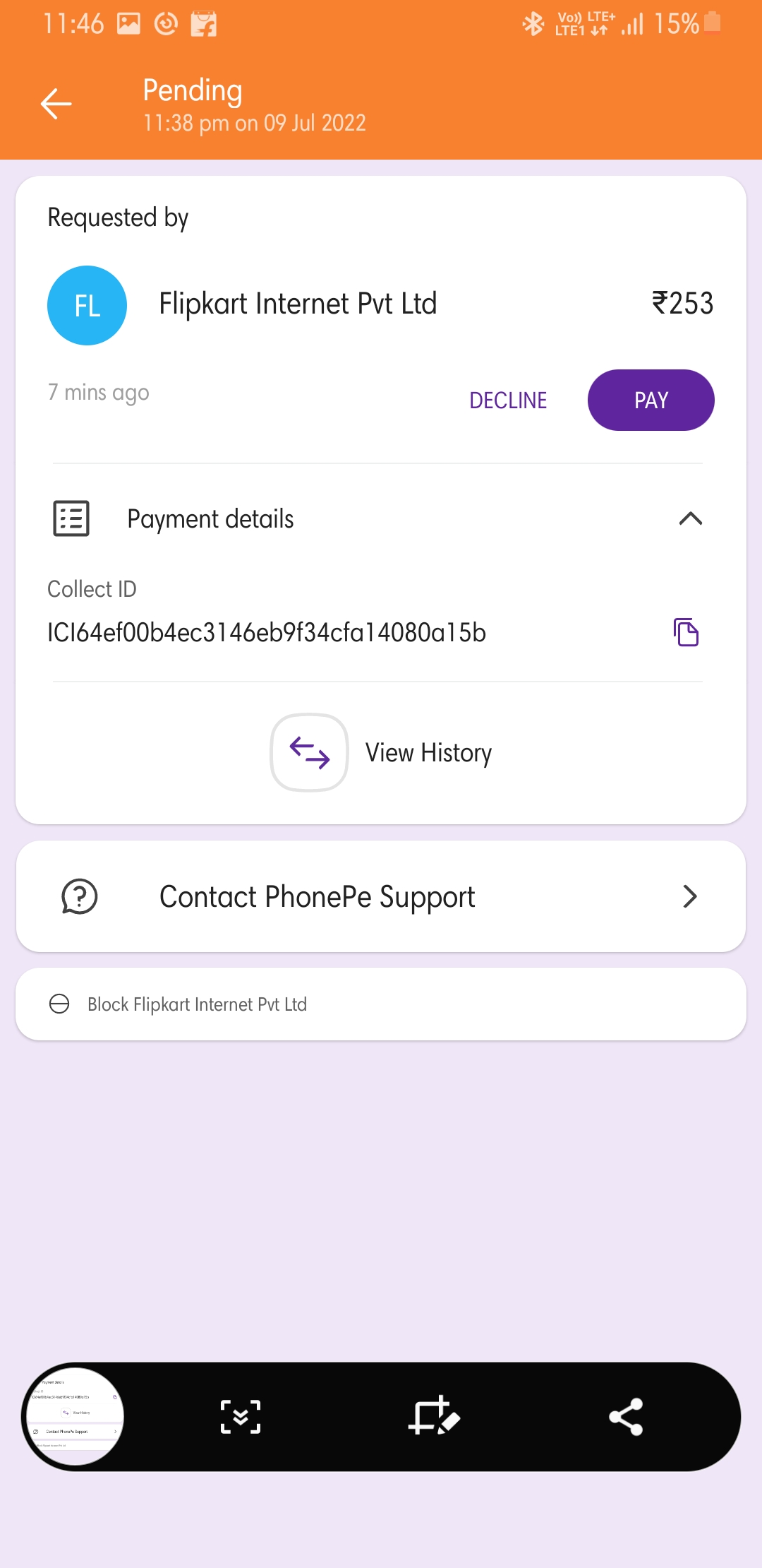 Flipkart asking me on phone pe to approve the money request,which was not requested by me.
