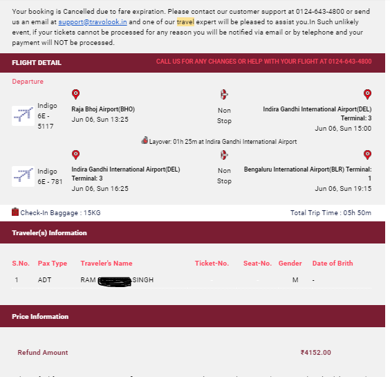 The amount has been detected from my account and after some time I received a call from the Travo look executive about the flight information that the flight got canceled due to some operational reasons and they said like after 10-15 working days you will get your refund back. Now it’s been more than 50 days they didn’t refund the cancelation amount and when ever