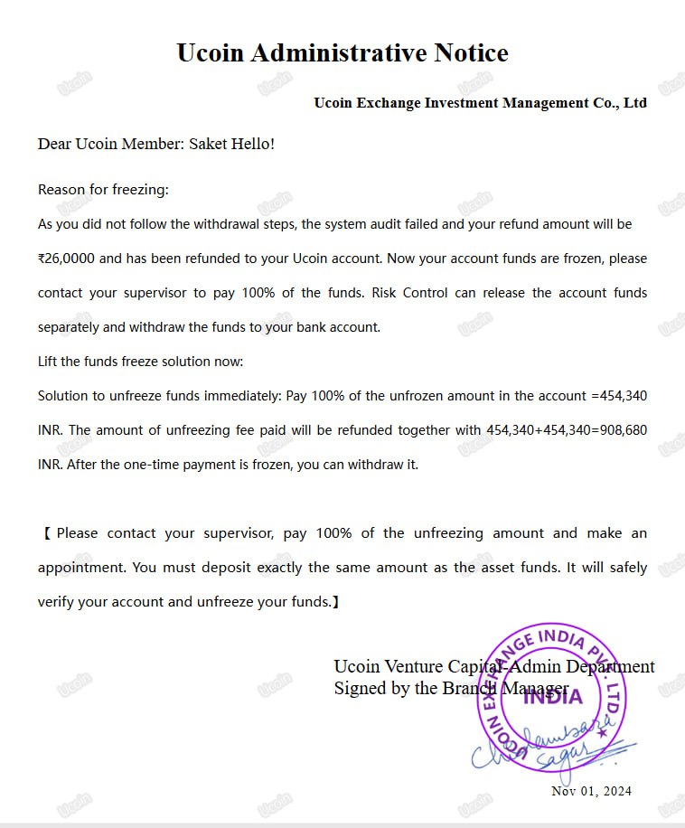 | Name(s) of companies complained against | Ucoin |