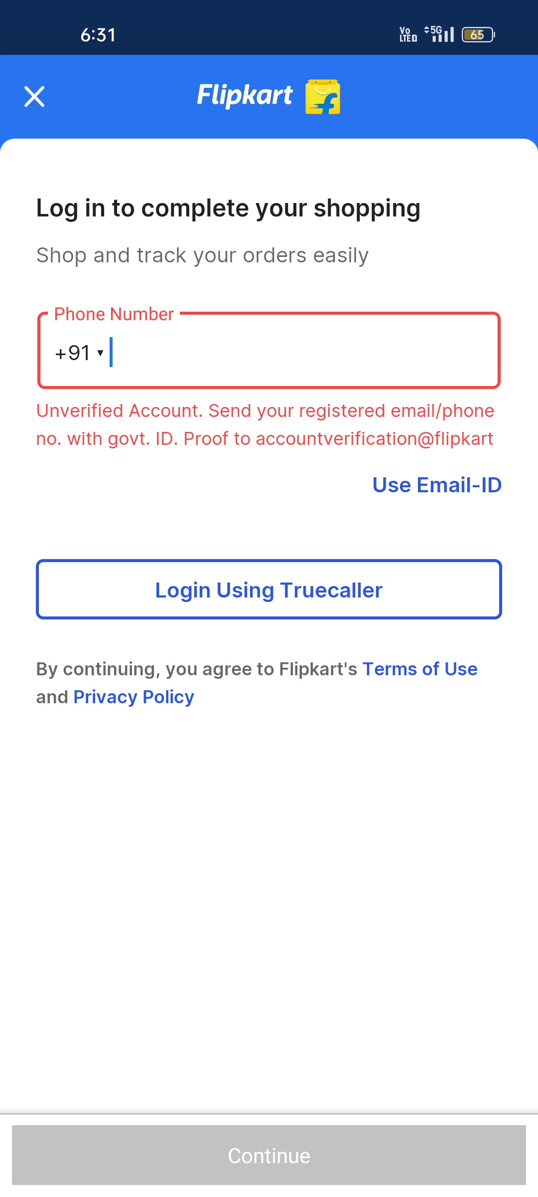 When I went to login to Flipkart it shows”unverified account send your registered email/ phone no. With govt id proof to accountverfication@flipkart