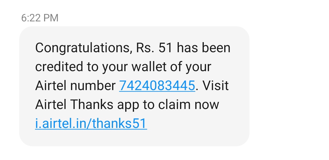 A message has been received by me saying I have been credited certain amount of money on my airtel wallet and says to collect it but when I goes for that, I didn’t get any money.