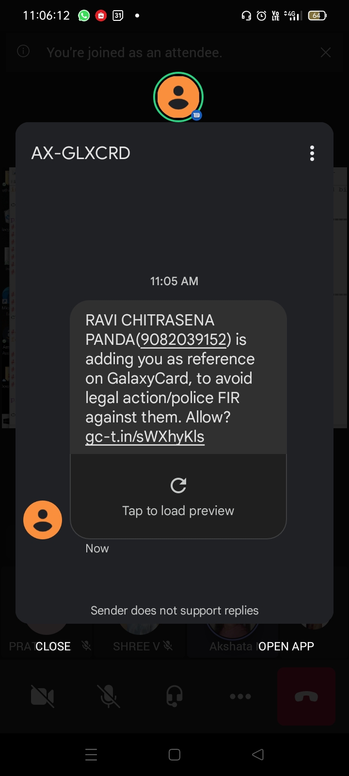Got a message saying that I’m added as GalaxyCard reference for someone and to avoid legal action/FIR to be raised against them. I didn’t authorize any such thing.