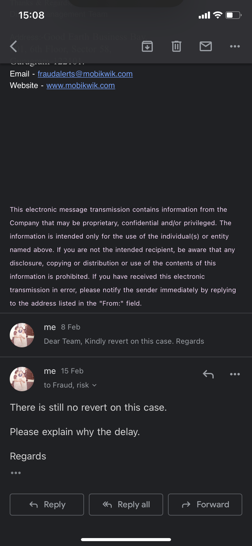 The statement reads as Bank Refund. But the amount wasn’t credited to my bank. Complained to Mobikwik regarding this but have gotten no resolution. This is causing a lot of financial distress in these difficult times.