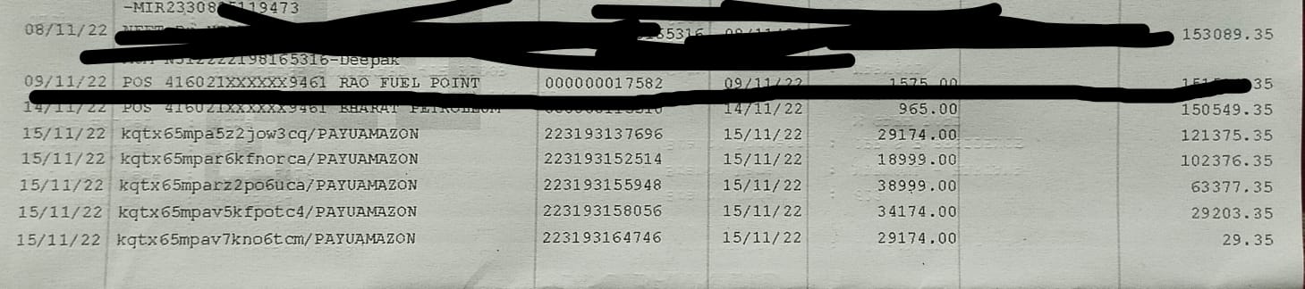 On Nov 15, 2022, my HDFC ATM card (416021XXXXXX9461) & mobile (9467539459) was stolen & 5 transactions were done on AMAZON. With the help of bank, I came to know that 5 mobiles have been bought from my account worth RS 150540 from Amazon.