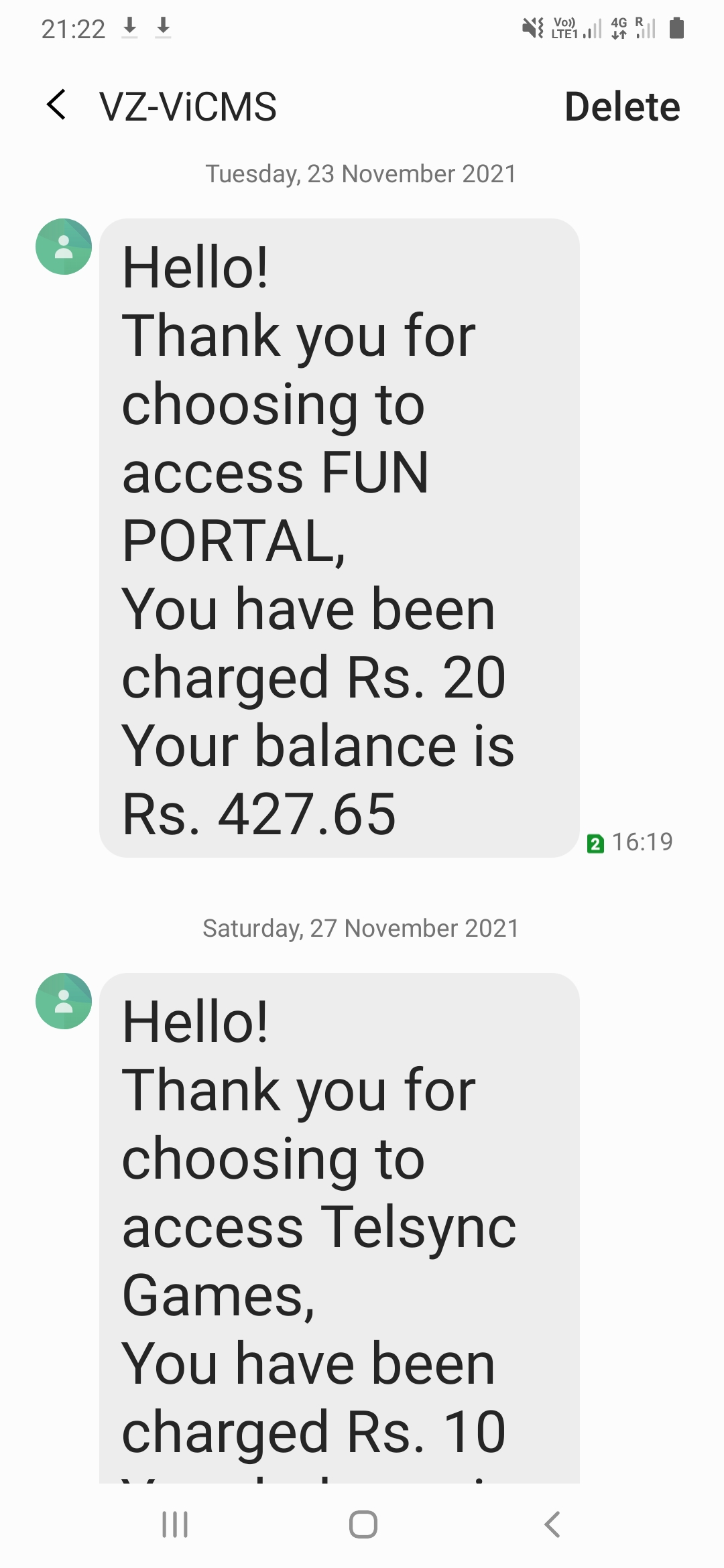 Unauthirized deduction of balance of 20 rupees for fun portal on 23rd november 2021 and 10 rupees for telesync games on 27th november. However none of the services were ever requested for or availed. And the deduction of balance is unauthorized.