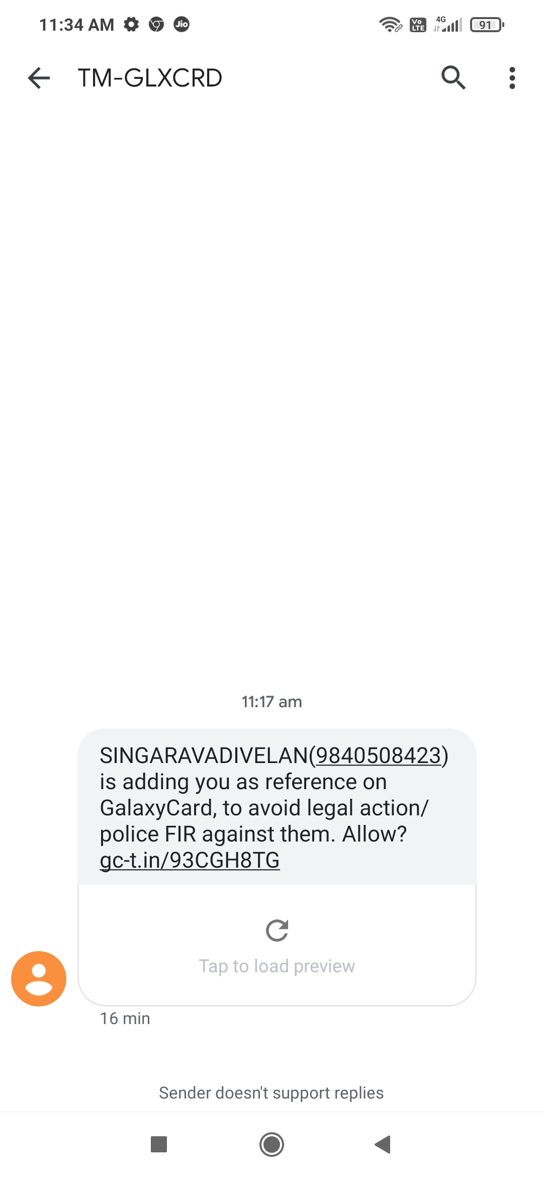 I have got a message from TM-GLXCRD which says that you have been added as reference on galaxy card, (msg screenshot attached).
