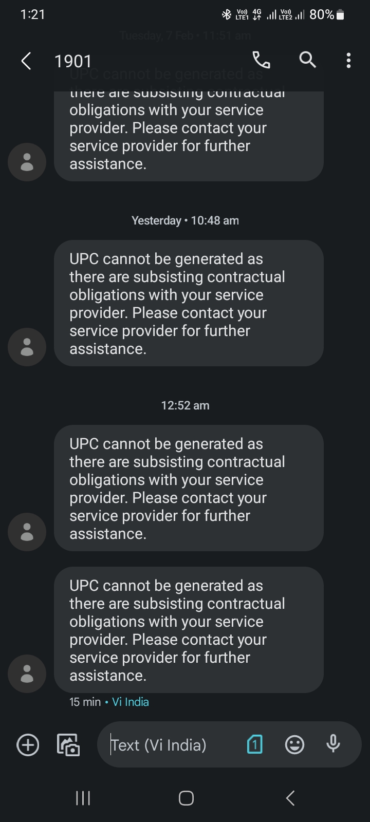 UPC cannot be generated as there are subsisting contractual obligations with your service provider. Please contact your service provider for further assistance.Iam trying to PORT out because going from one state to another state.