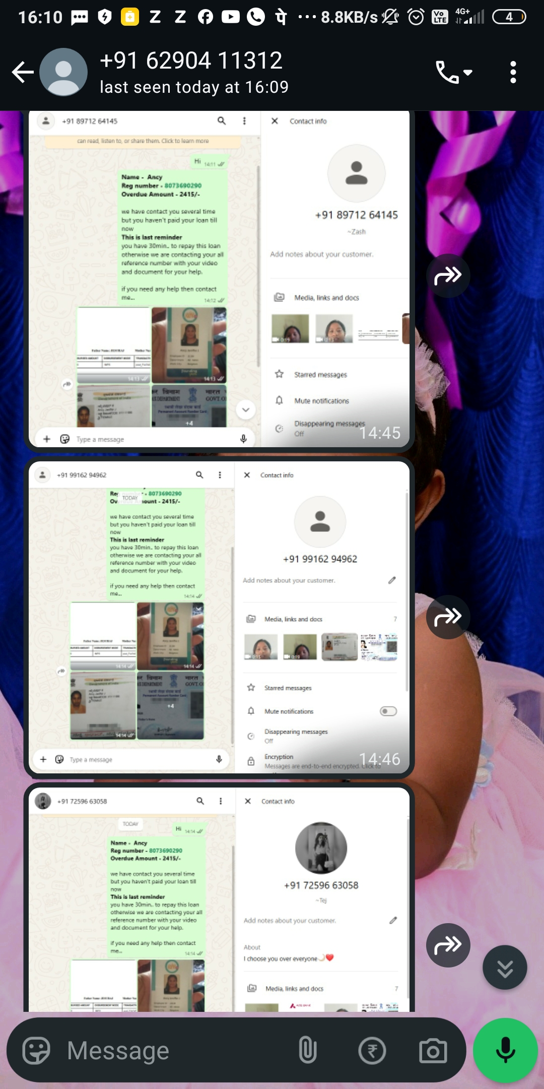 I have taken a loan from urban money I was unable to pay because I lost my job recently balance is only 2415/- but they are calling and torturing everyday and they are not giving time also for repayment and now they started sending my video n kyc documents to all my contacts and I’m feeling really embarassed and worried please help me.